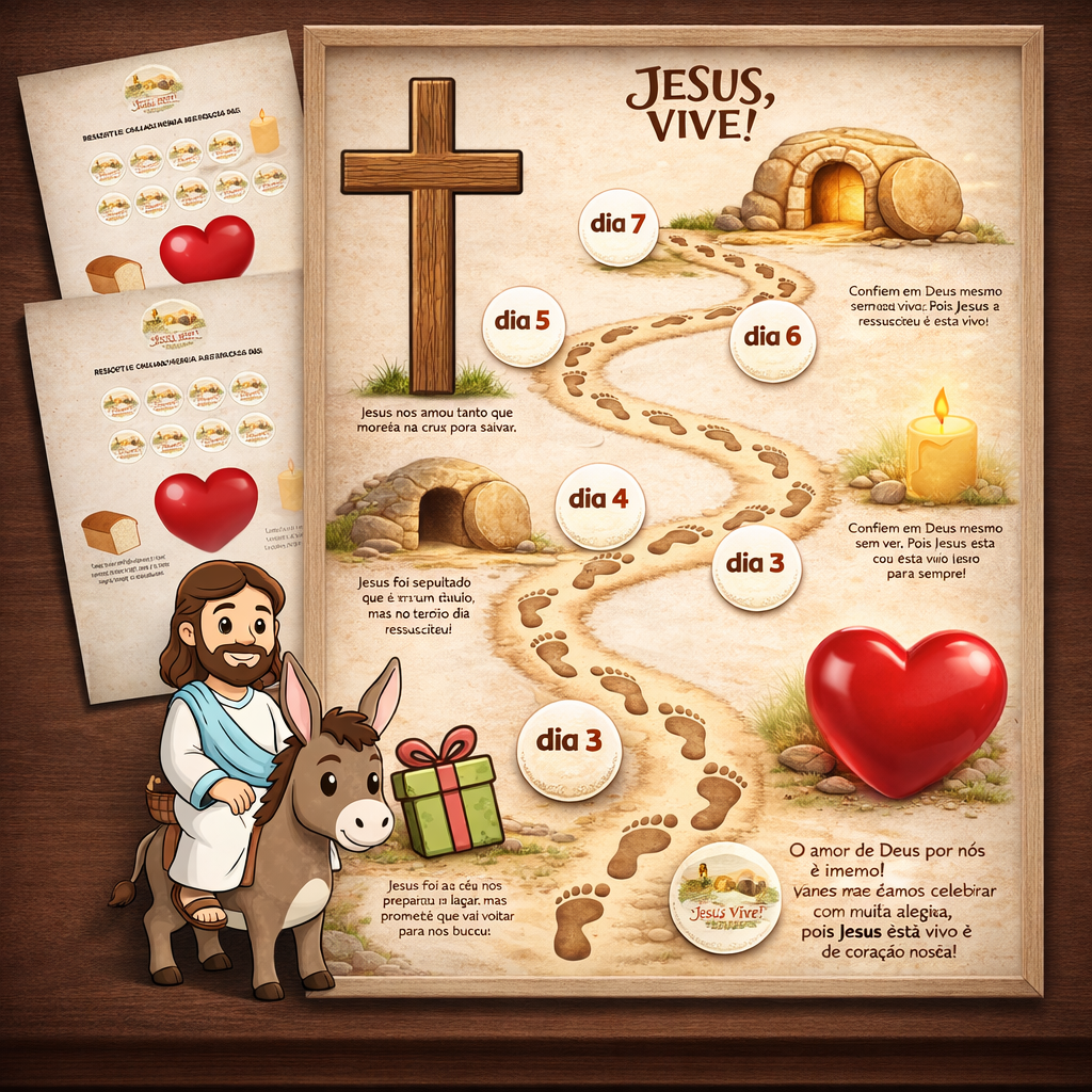 👉 Você gostaria que seu filho lembrasse da Páscoa como um tempo especial com Deus, e não apenas como mais uma data no calendário?